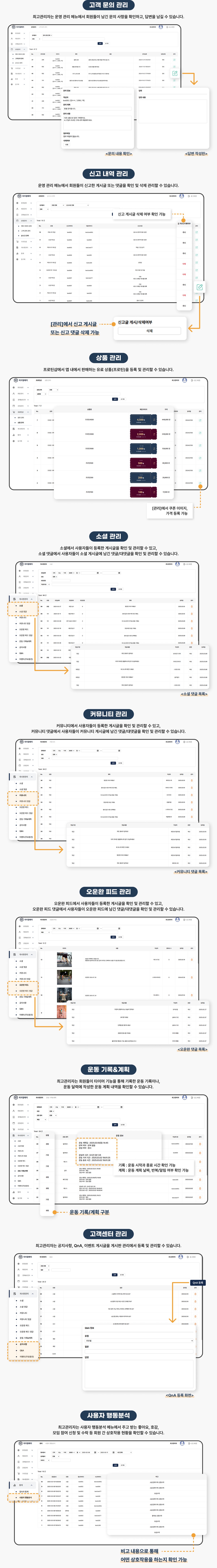 - 회원가입 현황, 심사 대기 회원, 문의/신고 내역 등 우선순위가 높은 항목 한눈에 확인 가능