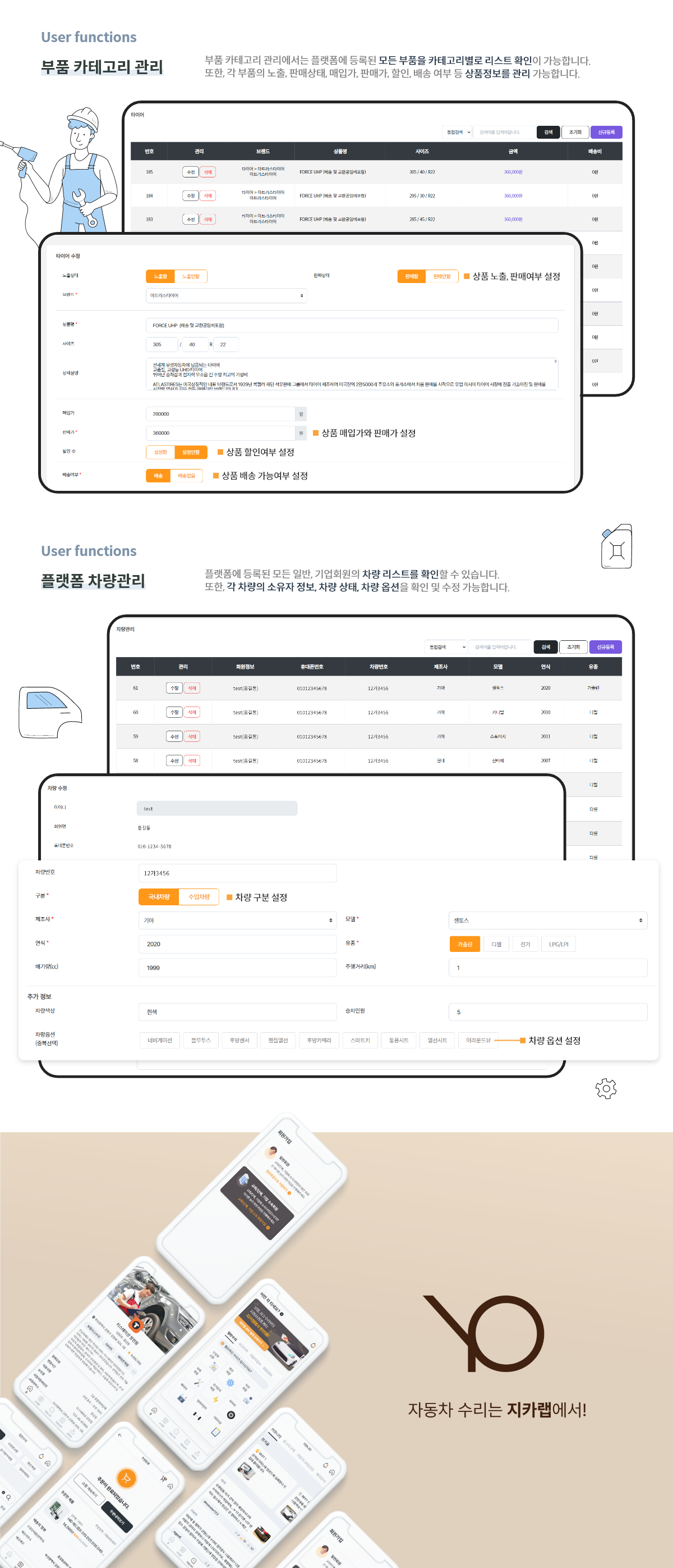 - 자동차용품관리: 앱에 표시되는 업체별 자동차용품을 관리합니다.