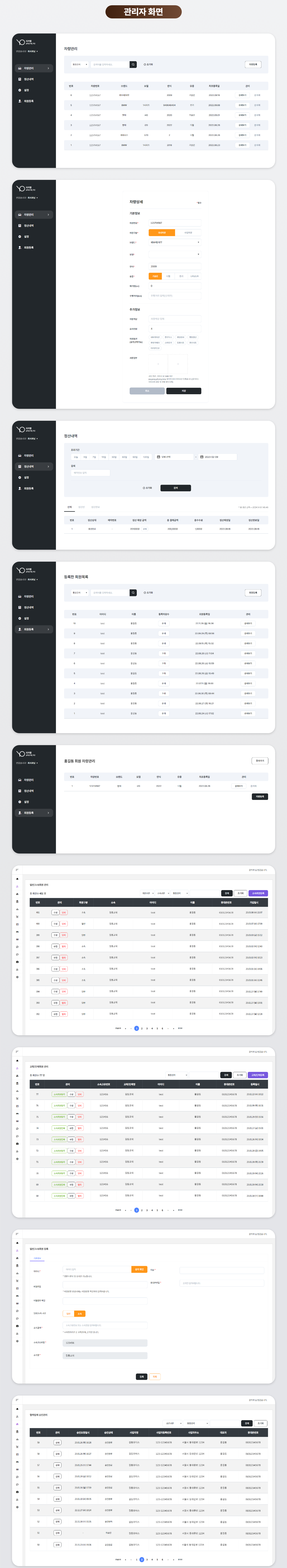 - 차량관리: 소속된 차량을 추가/관리할 수 있습니다.