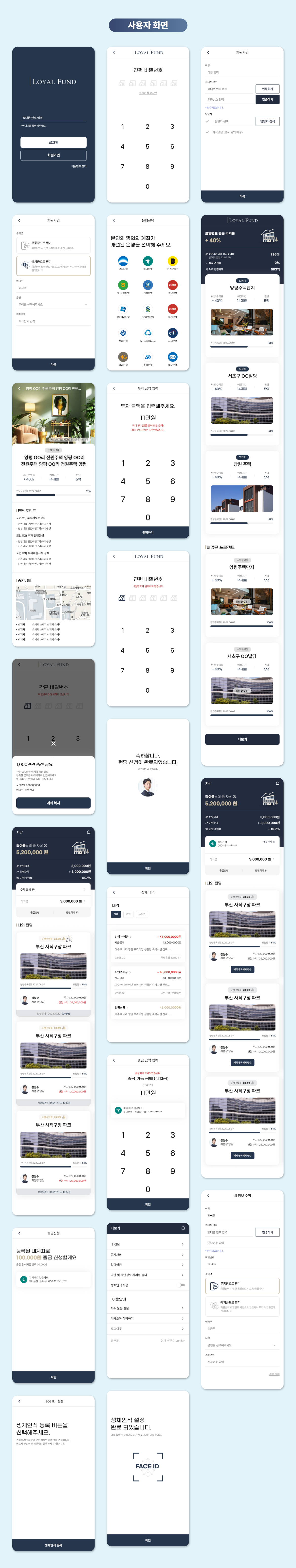 부동산/금융/대출 | 부동산 펀딩 확인 및 진행과 예치금 입출금, 생체인식 보안이 가능한 앱(부톡, 투게더 펀딩과 유사)
