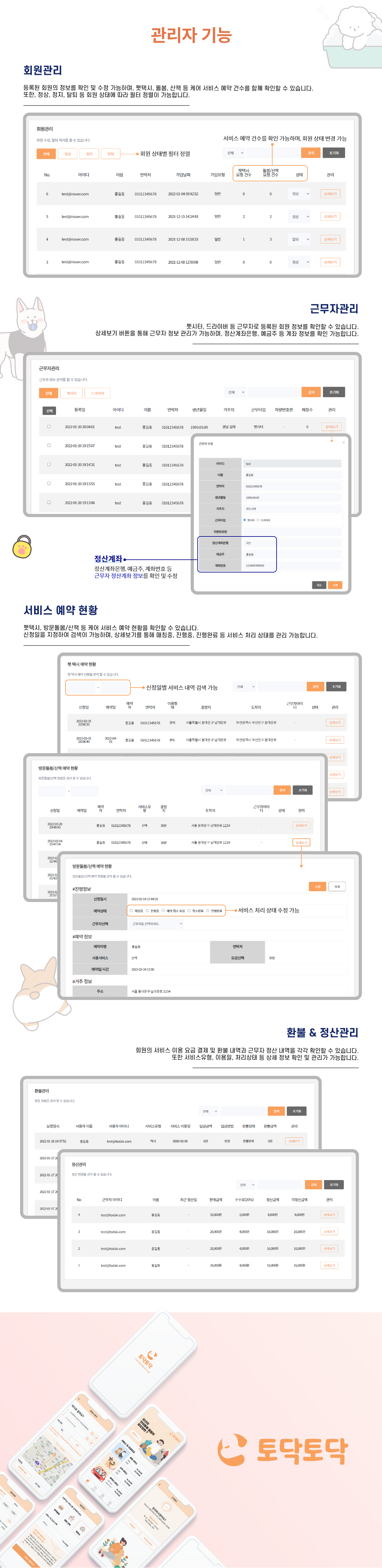 - 요청된 케어 서비스는 최고관리자가 확인 후 가능한 펫시터를 배정 후 고객에게 연락합니다.