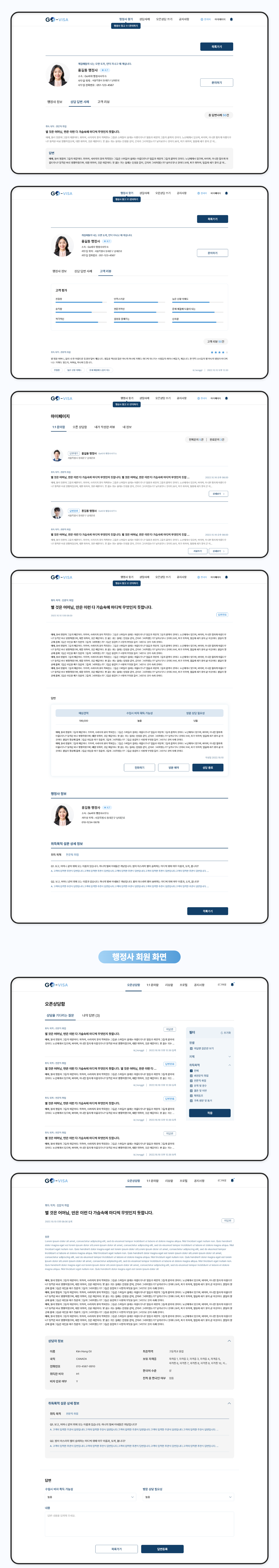 - 상담 상세에서는 질문 내용, 질문자의 정보, 취득할 비자 내용을 확인 가능하며 답변을 작성하거나 다른 행정사의 답변을 확인 가능