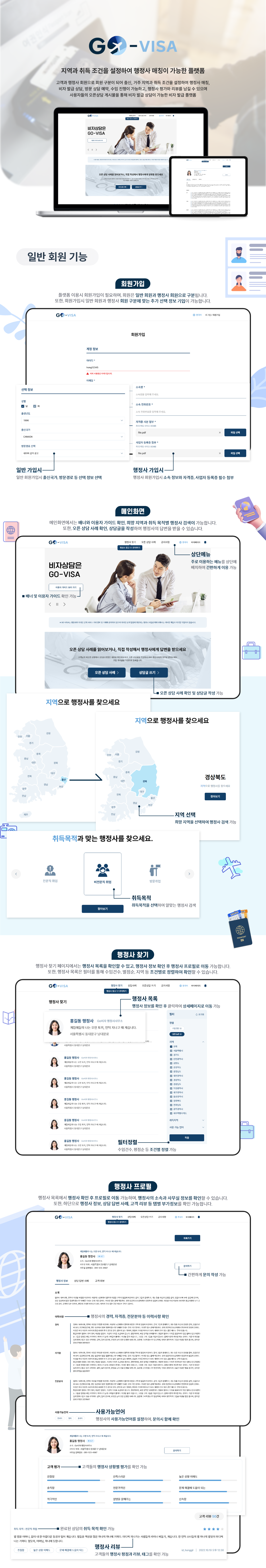 비자를 발급받고 싶은 외국인(사용자)와 비자 발급 상담을 진행할 행정사들을 매칭하고 상담을 진행하는 기능을 제공
